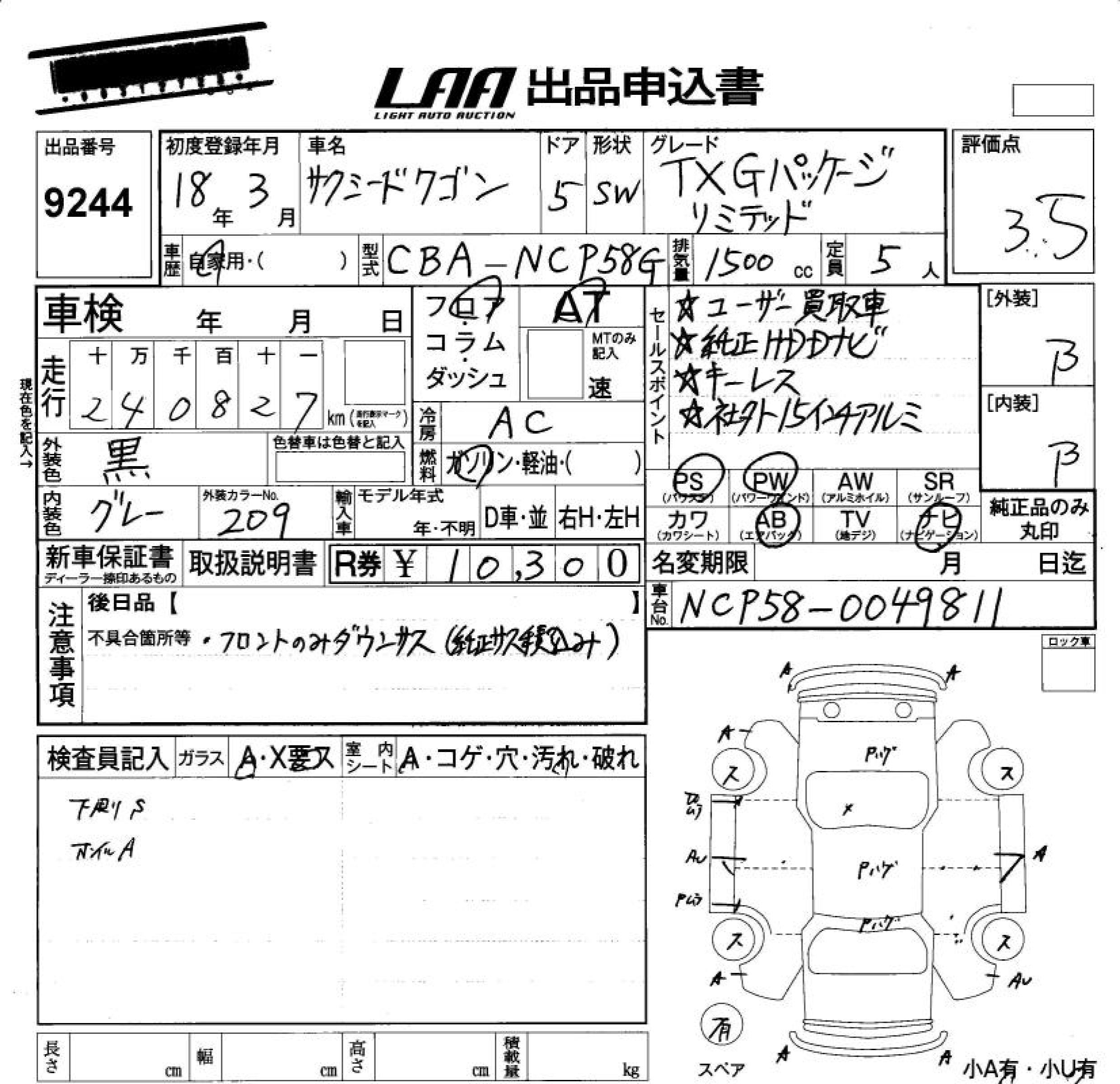 TOYOTA SUCCEED WAGON TX G PACKAGE * LIMITED - лот 9244