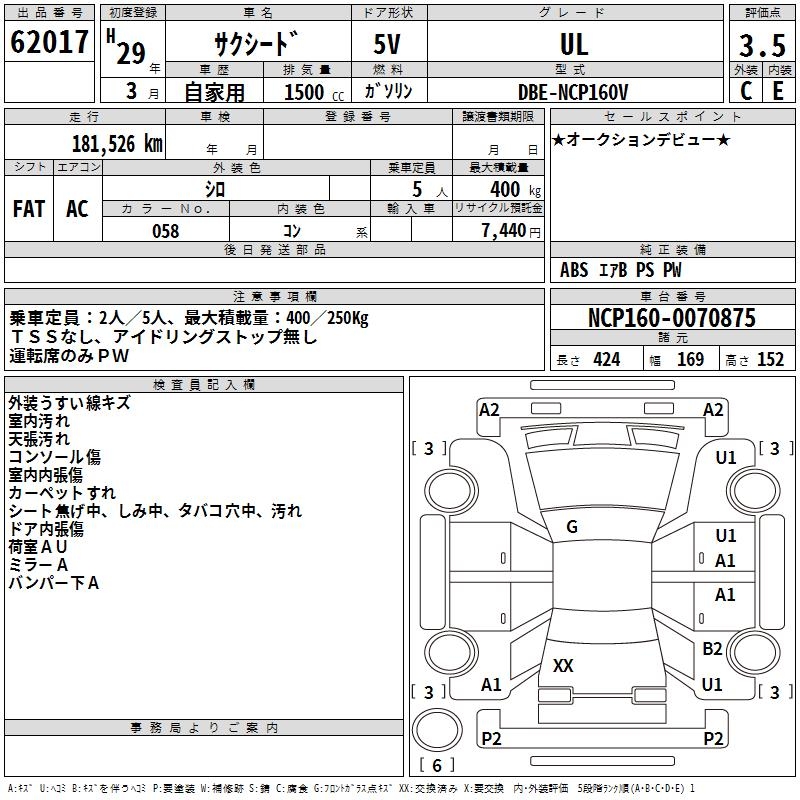 TOYOTA SUCCEED WAGON UL - лот 62017