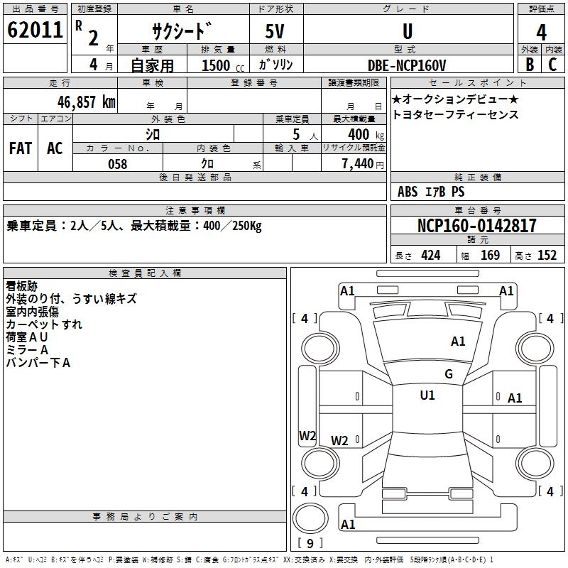 TOYOTA SUCCEED WAGON U - лот 62011