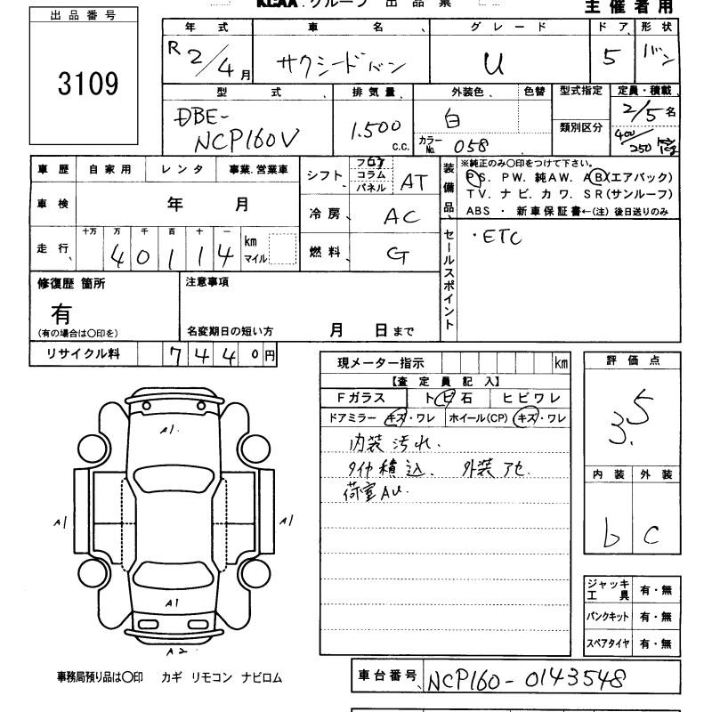 TOYOTA SUCCEED WAGON U - лот 3109