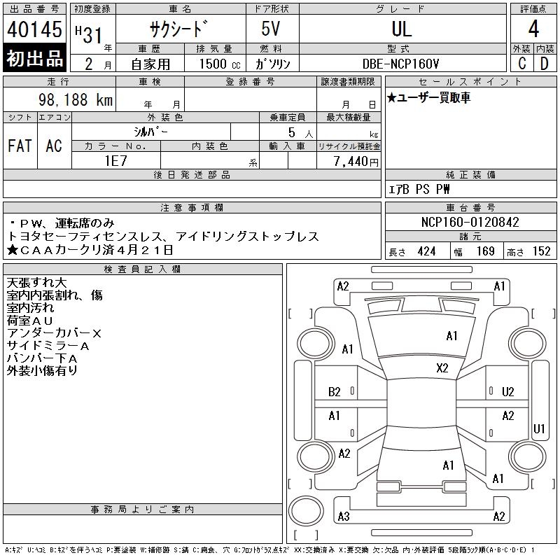 TOYOTA SUCCEED WAGON UL - лот 40145