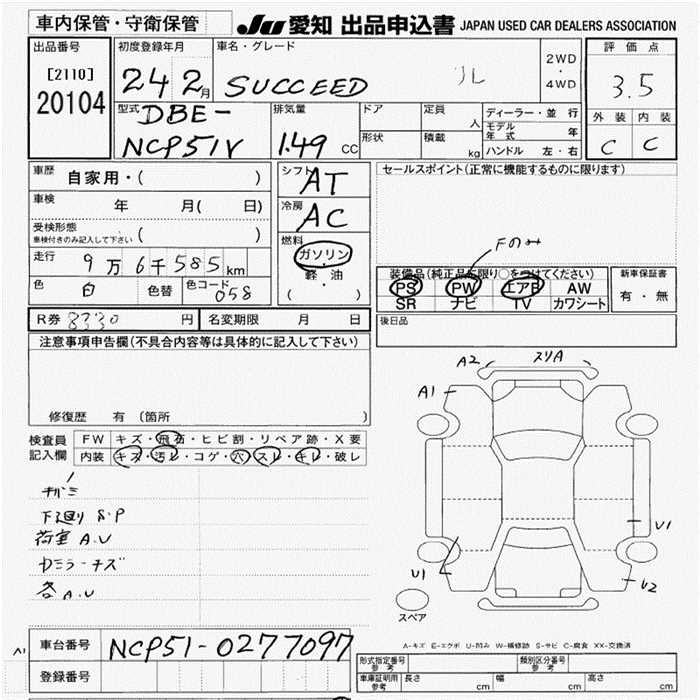 TOYOTA SUCCEED WAGON UL - лот 20104