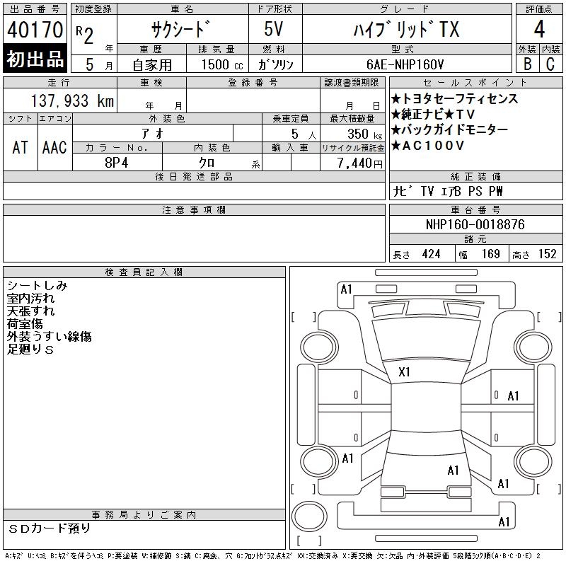 TOYOTA SUCCEED WAGON HYBRID TX - лот 40170