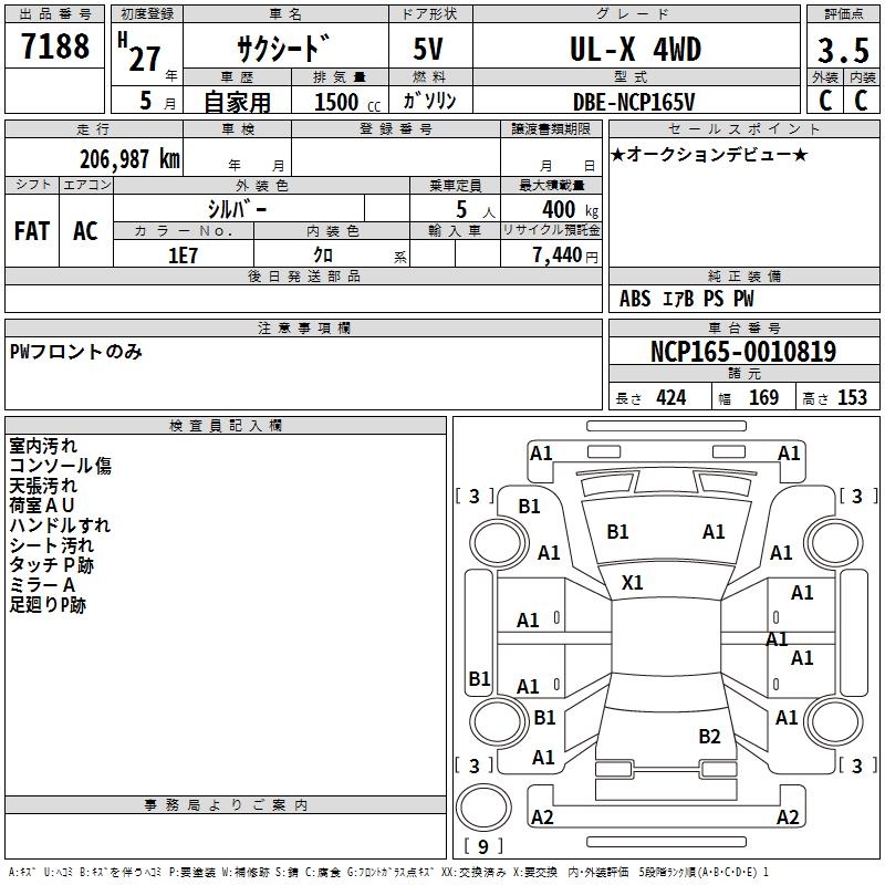 TOYOTA SUCCEED WAGON UL-X 4WD - лот 7188
