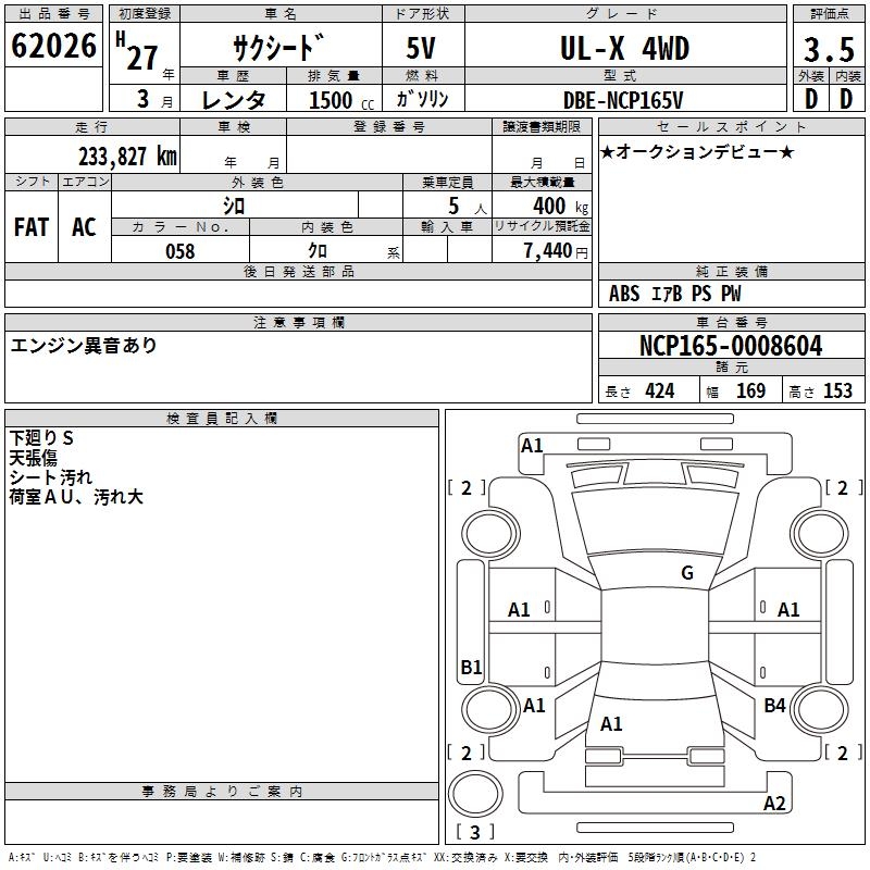 TOYOTA SUCCEED WAGON UL-X 4WD - лот 62026