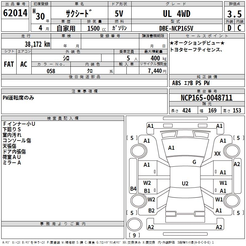 TOYOTA SUCCEED WAGON UL 4WD - лот 62014