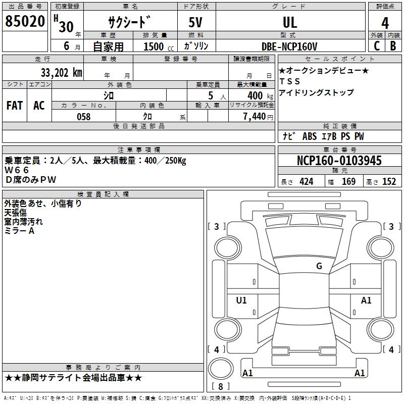 TOYOTA SUCCEED WAGON UL - лот 85020