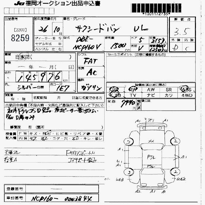 TOYOTA SUCCEED WAGON UL - лот 8259