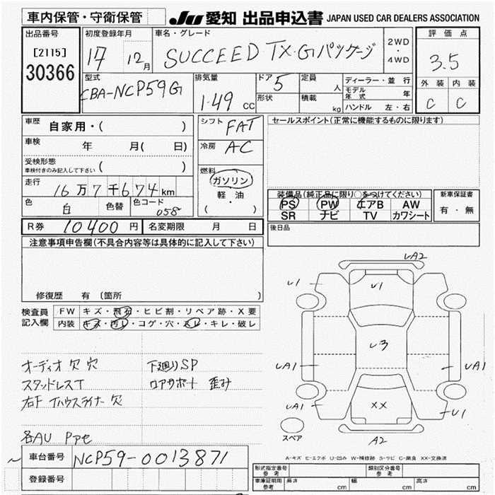 TOYOTA SUCCEED WAGON TX G PACKAGE - лот 30366