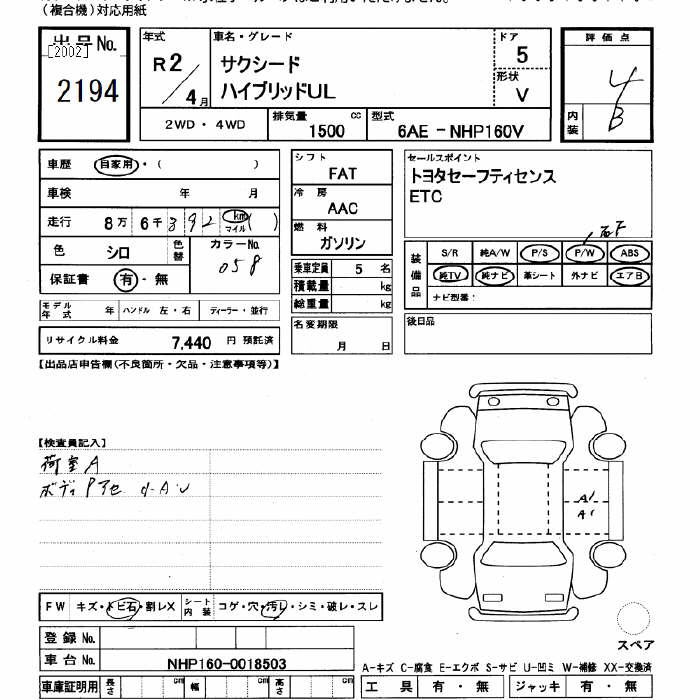 TOYOTA SUCCEED WAGON HYBRID UL - лот 2194