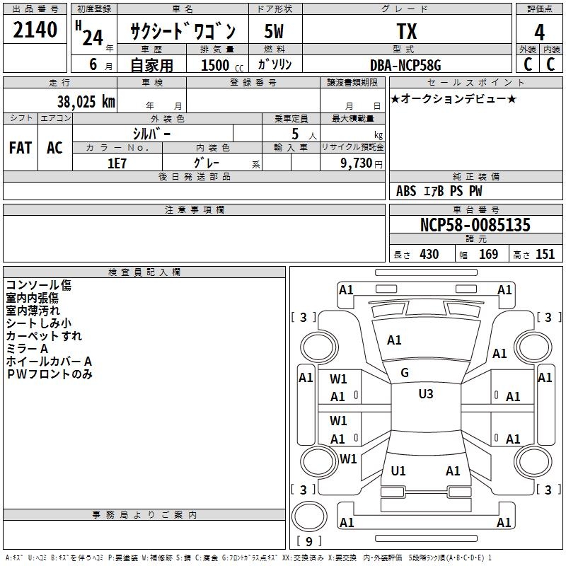 TOYOTA SUCCEED WAGON TX - лот 2140