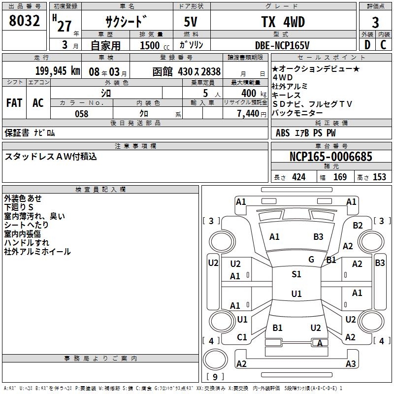 TOYOTA SUCCEED WAGON TX 4WD - лот 8032