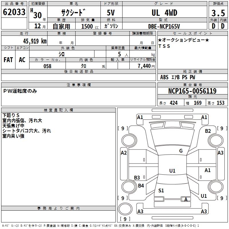 TOYOTA SUCCEED WAGON UL 4WD - лот 62033