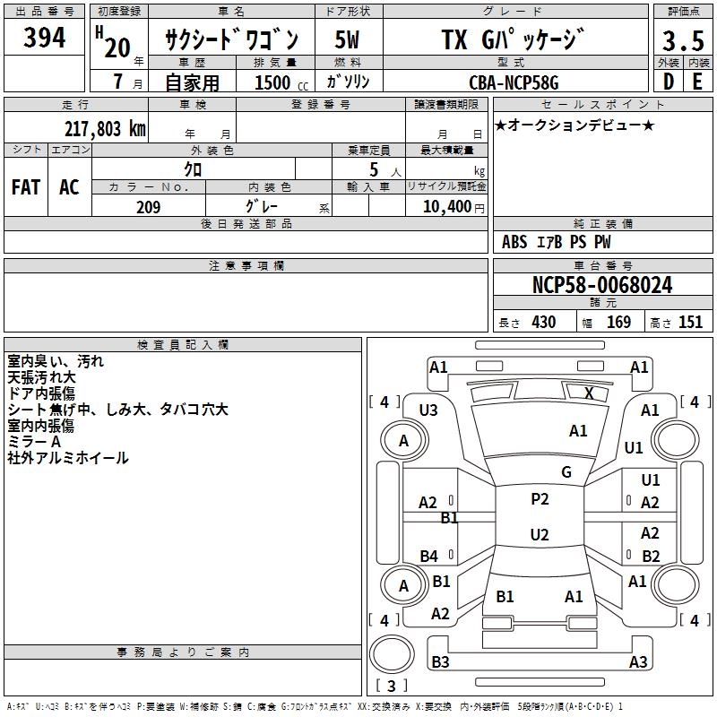 TOYOTA SUCCEED WAGON TX G PACKAGE - лот 394