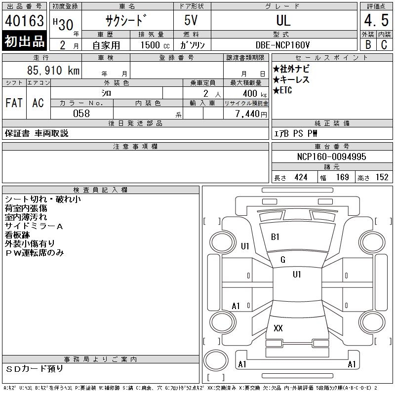 TOYOTA SUCCEED WAGON UL - лот 40163