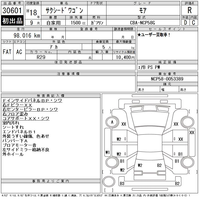 TOYOTA SUCCEED WAGON MOA - лот 30601