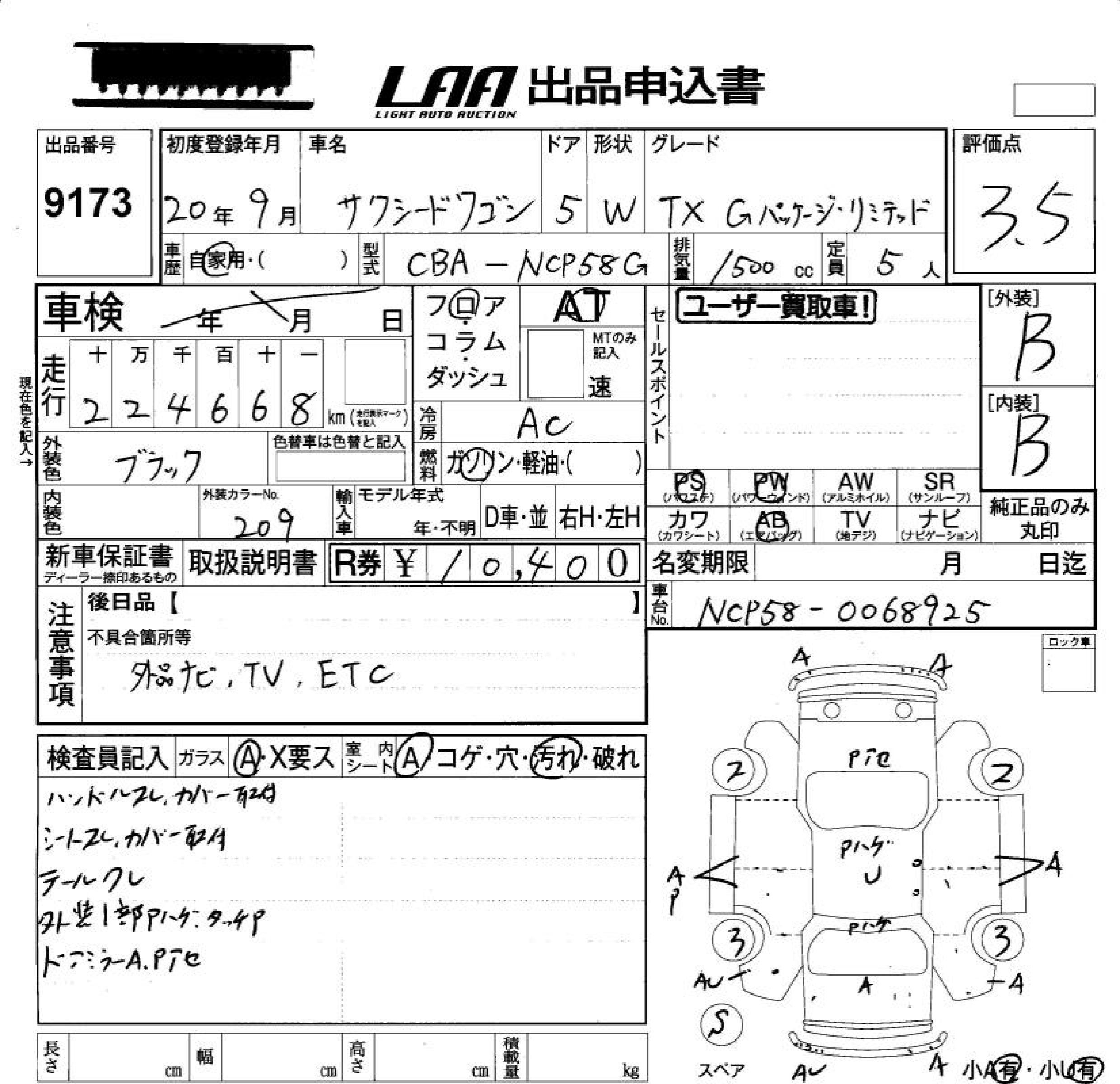 TOYOTA SUCCEED WAGON TX G PACKAGE * LIMITED - лот 9173