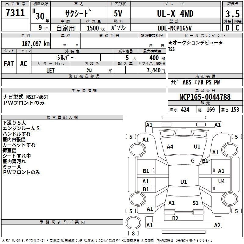 TOYOTA SUCCEED WAGON UL-X 4WD - лот 7311