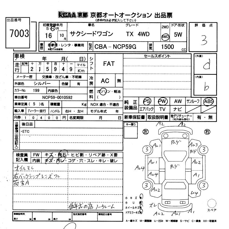 TOYOTA SUCCEED WAGON TX 4WD - лот 7003