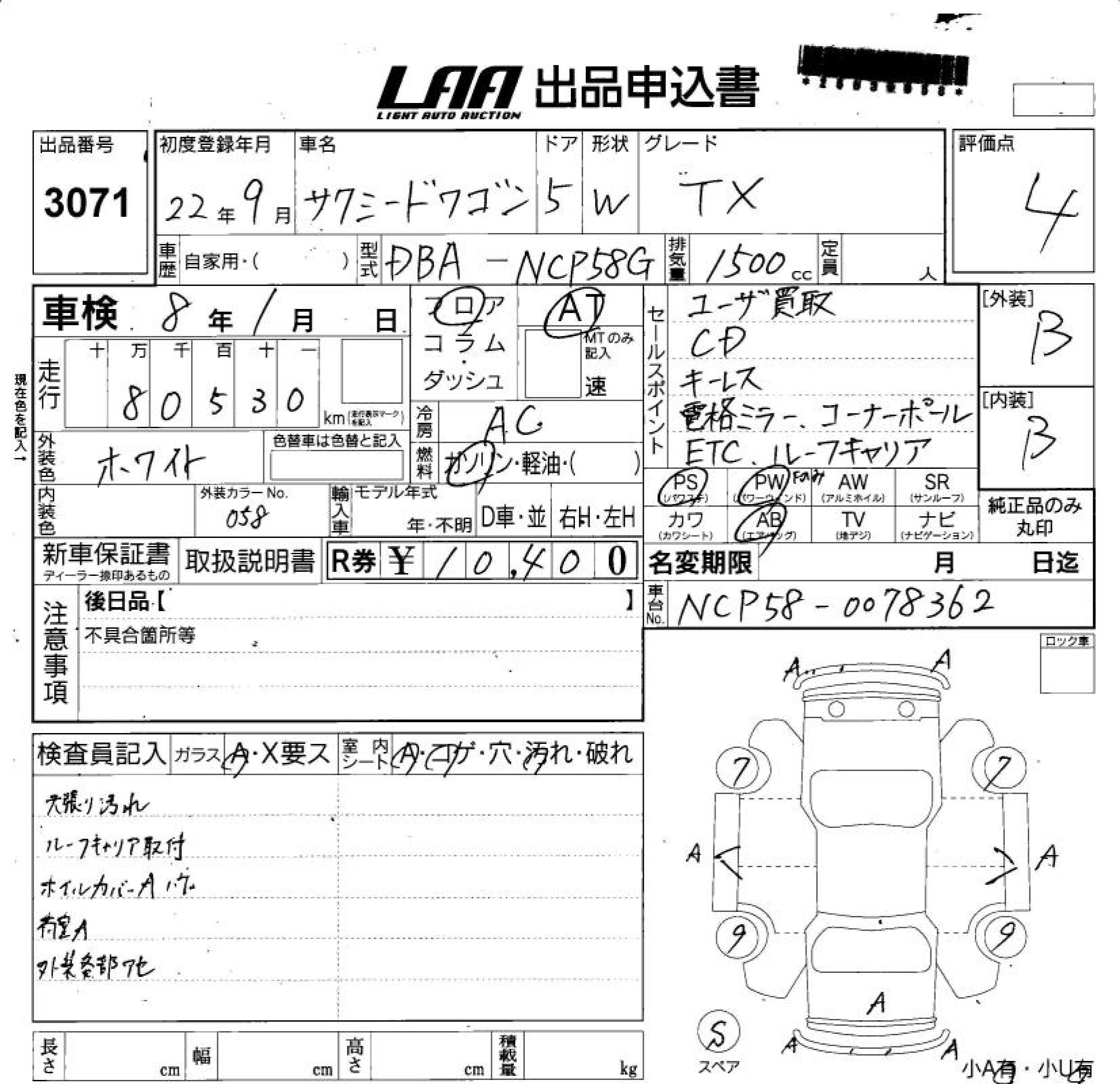 TOYOTA SUCCEED WAGON TX - лот 3071