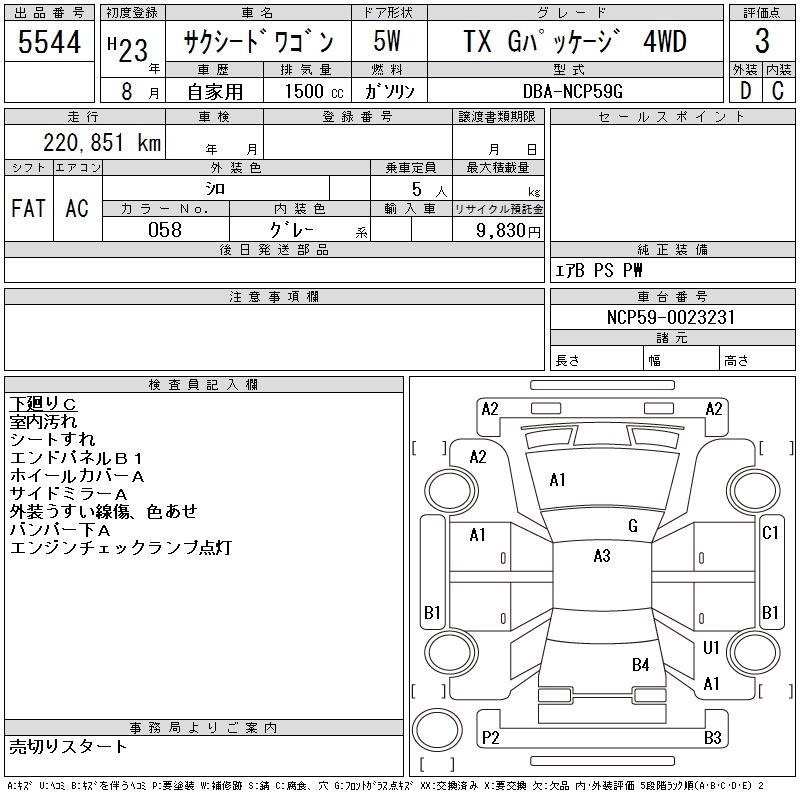 TOYOTA SUCCEED WAGON - лот 5544