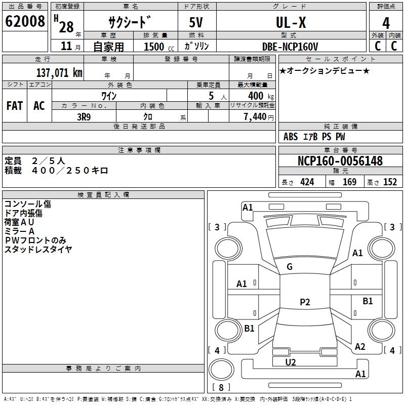 TOYOTA SUCCEED WAGON - лот 62008