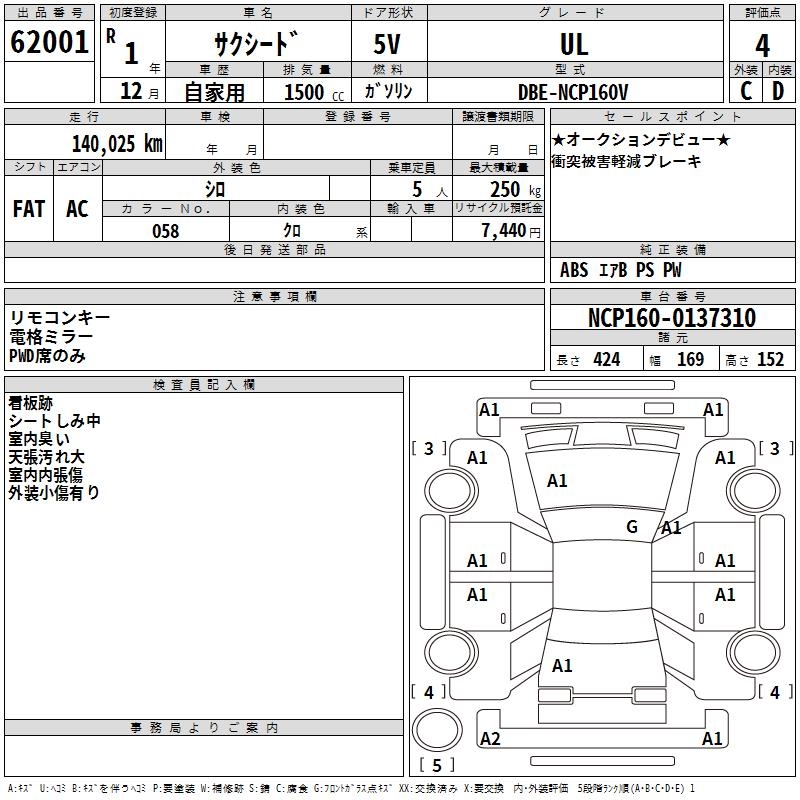 TOYOTA SUCCEED WAGON - лот 62001