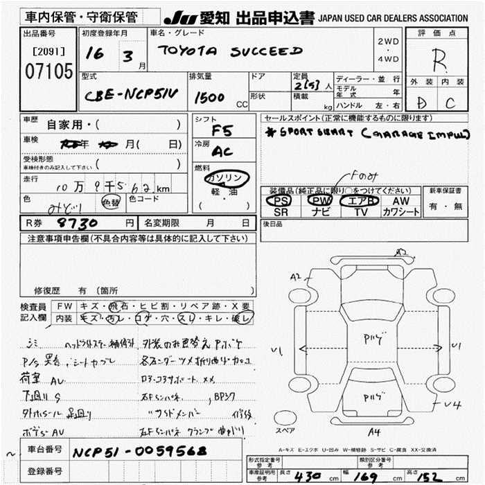 TOYOTA SUCCEED WAGON - лот 7105