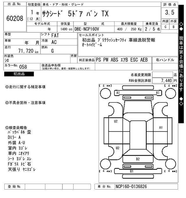 TOYOTA SUCCEED WAGON - лот 60208