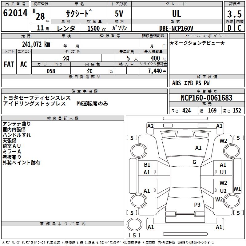 TOYOTA SUCCEED WAGON - лот 62014