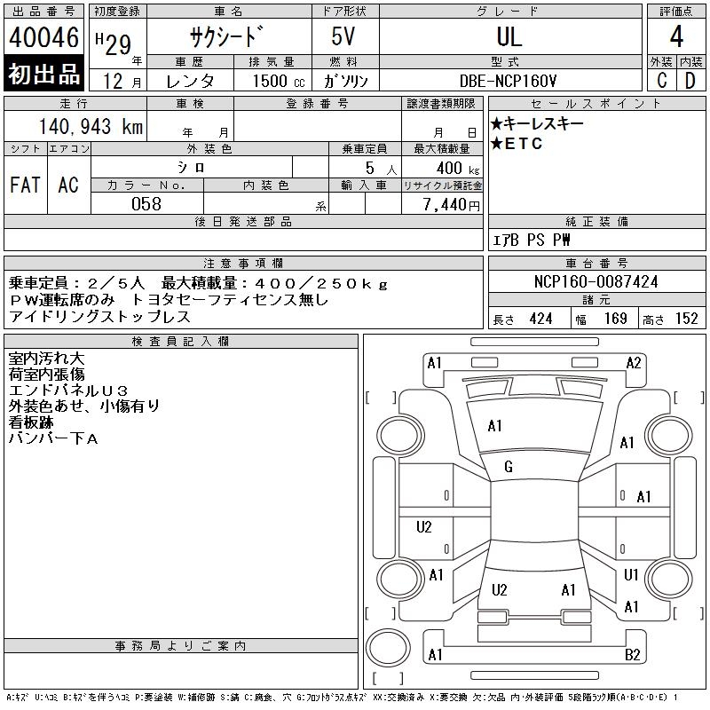 TOYOTA SUCCEED WAGON UL - лот 40046