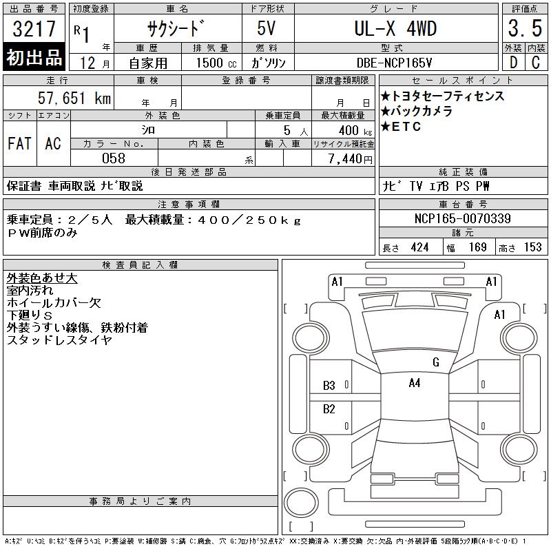 TOYOTA SUCCEED WAGON UL-X 4WD - лот 3217