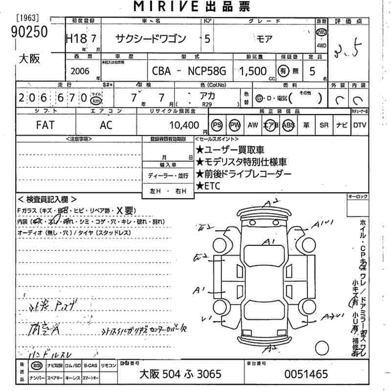 TOYOTA SUCCEED WAGON MOA - лот 90250