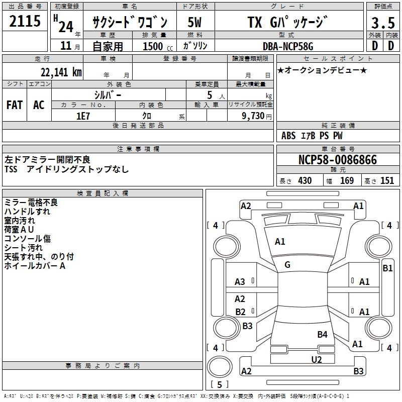 TOYOTA SUCCEED WAGON TX G PACKAGE - лот 2115