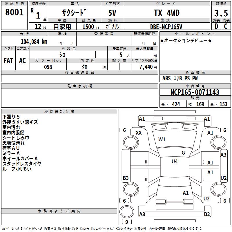 TOYOTA SUCCEED WAGON TX 4WD - лот 8001