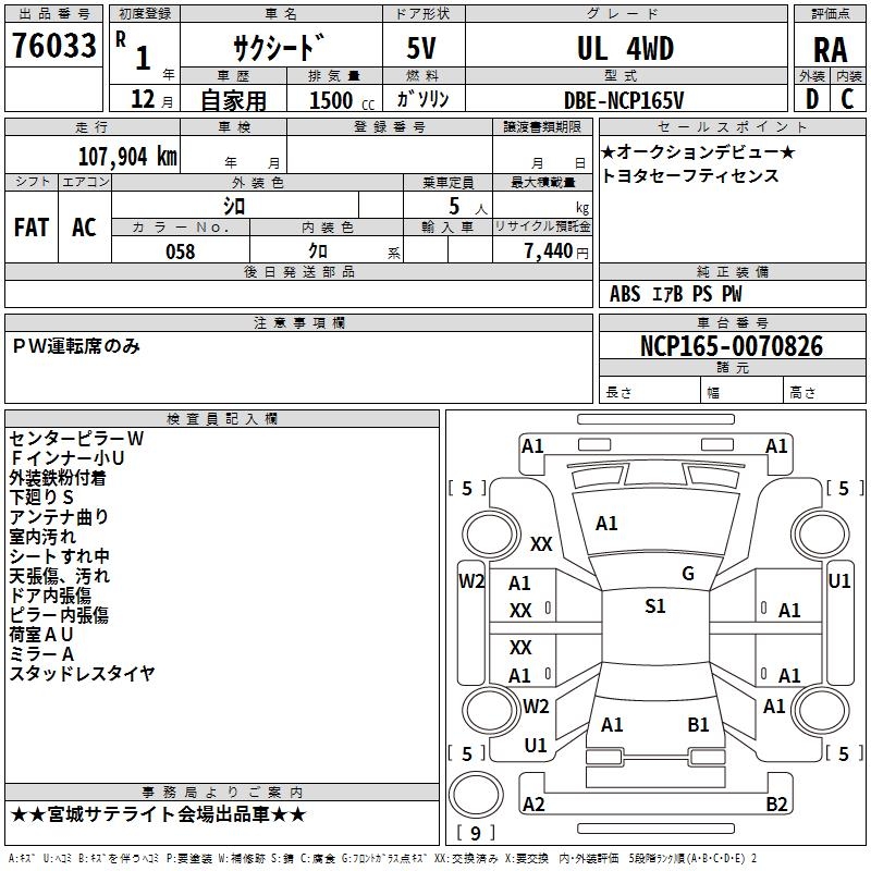 TOYOTA SUCCEED WAGON UL 4WD - лот 76033