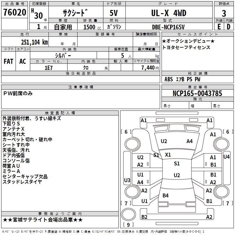 TOYOTA SUCCEED WAGON UL-X 4WD - лот 76020