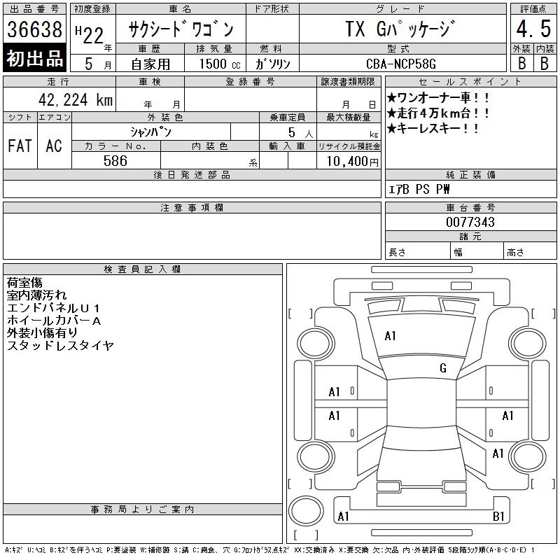 TOYOTA SUCCEED WAGON TX G PACKAGE - лот 36638