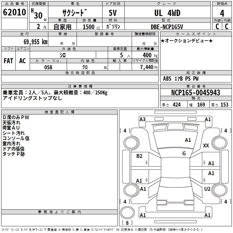 TOYOTA SUCCEED WAGON UL 4WD - лот 62010