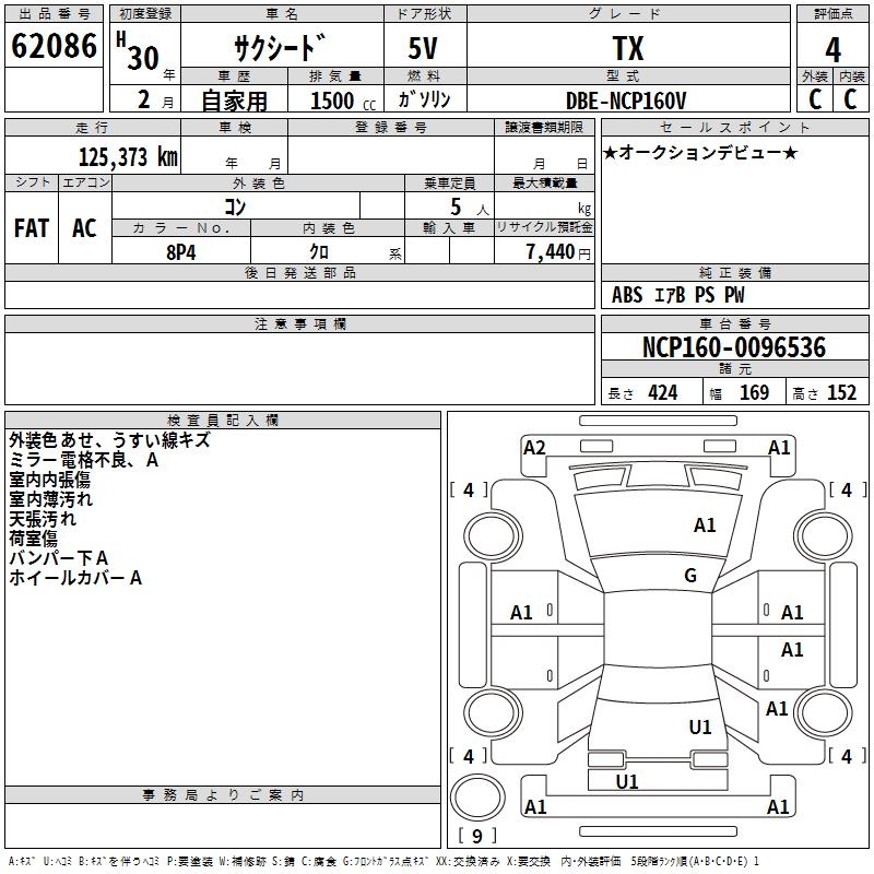 TOYOTA SUCCEED WAGON TX - лот 62086