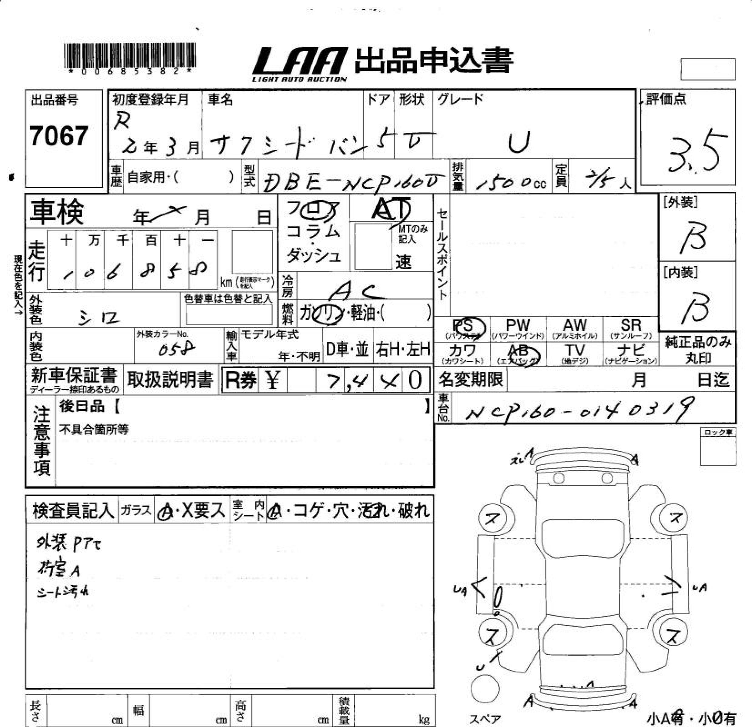 TOYOTA SUCCEED WAGON U - лот 7067