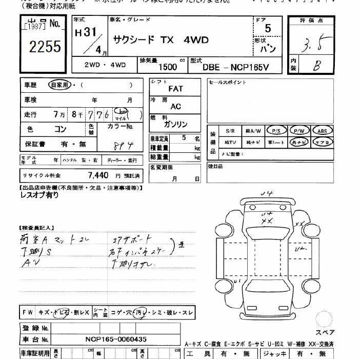 TOYOTA SUCCEED WAGON 4WD TX - лот 2255