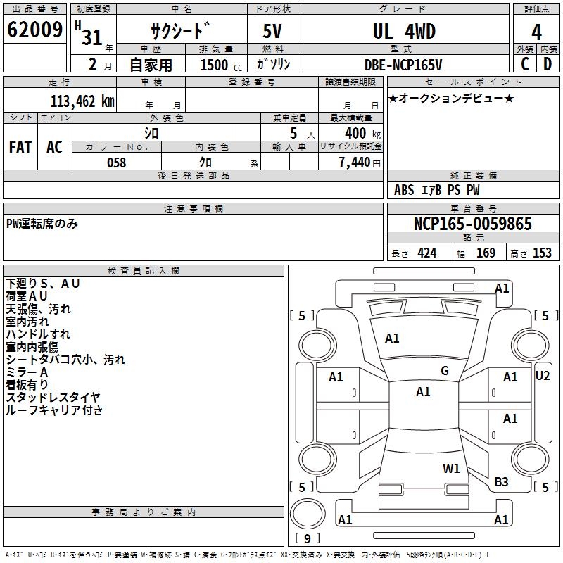 TOYOTA SUCCEED WAGON UL 4WD - лот 62009