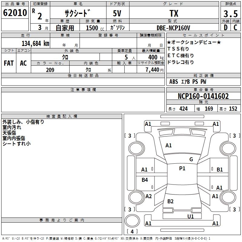 TOYOTA SUCCEED WAGON TX - лот 62010