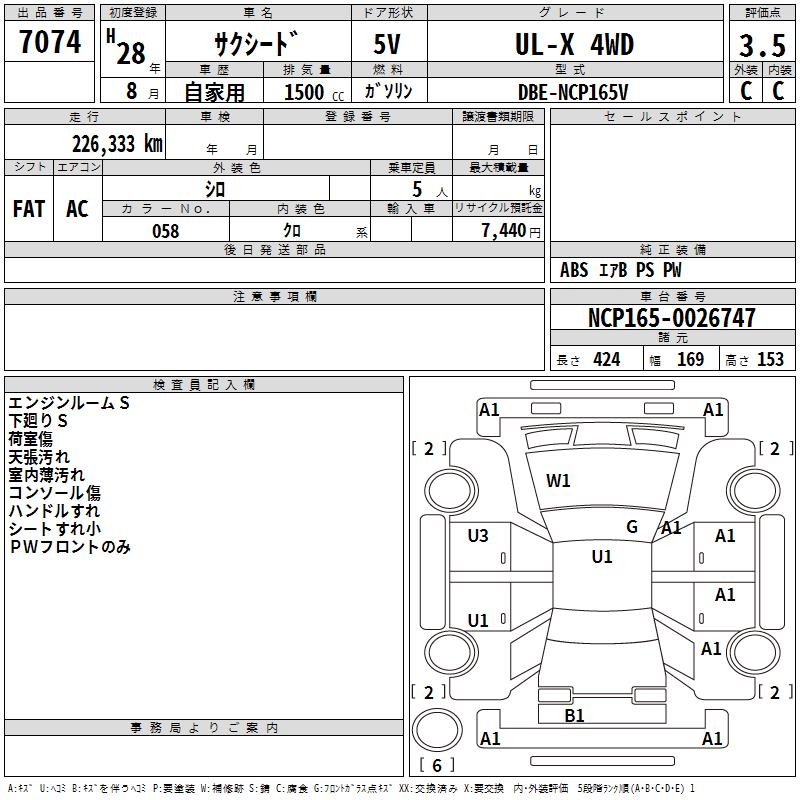 TOYOTA SUCCEED WAGON UL-X 4WD - лот 7074