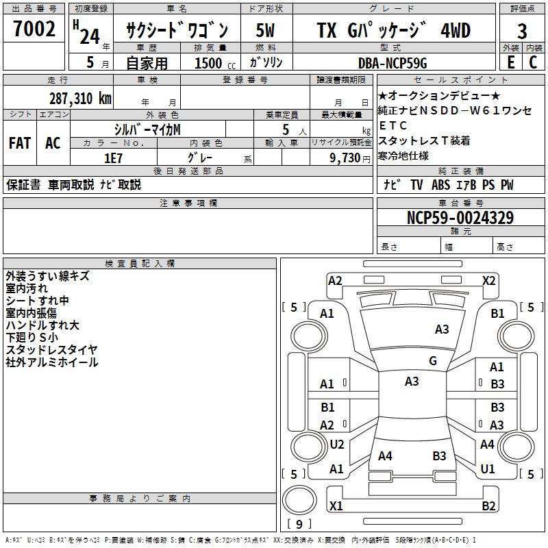 TOYOTA SUCCEED WAGON TX G PACKAGE 4WD - лот 7002