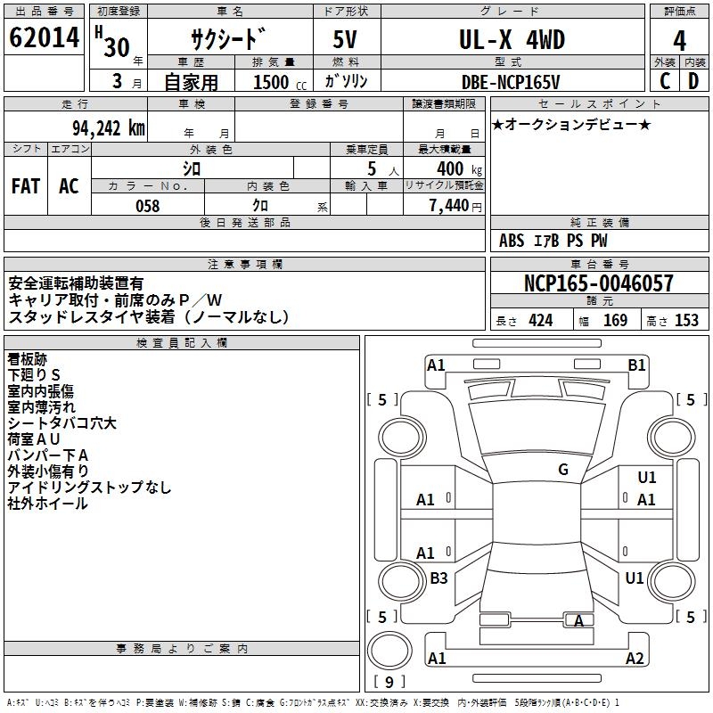 TOYOTA SUCCEED WAGON UL-X 4WD - лот 62014