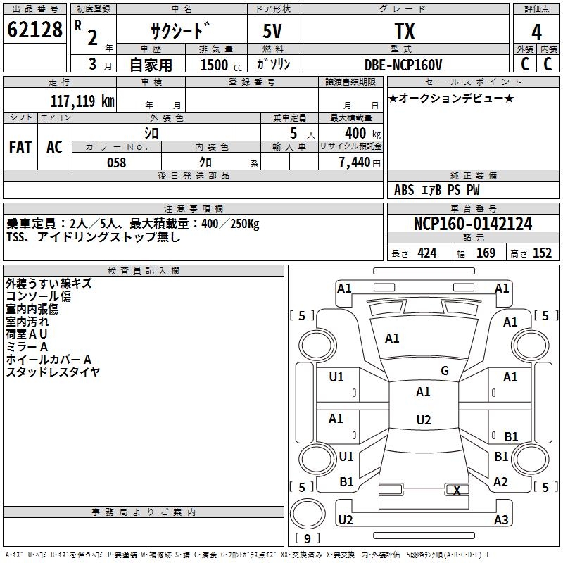 TOYOTA SUCCEED WAGON TX - лот 62128