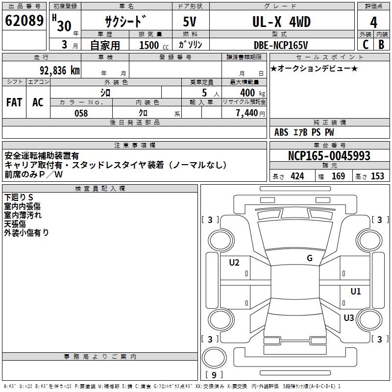 TOYOTA SUCCEED WAGON UL-X 4WD - лот 62089