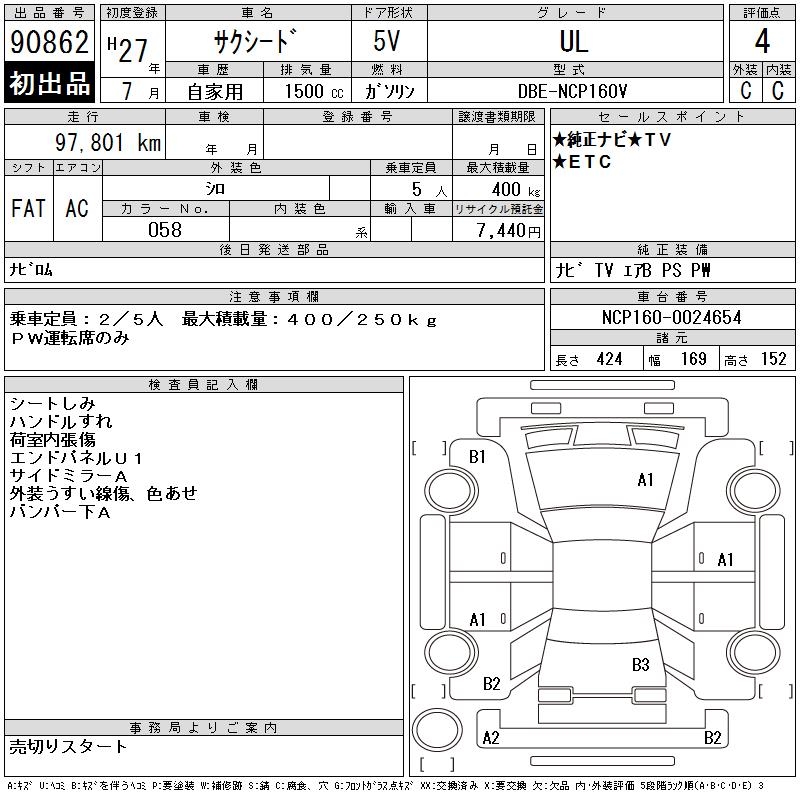 TOYOTA SUCCEED WAGON UL - лот 90862